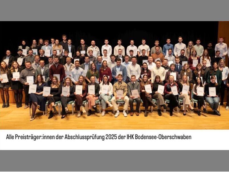 Insgesamt nahmen 2.103 Prüflinge aus den Landkreisen Sigmaringen, Ravensburg und dem Bodenseekreis an den IHK-Abschlussprüfungen teil. 1.982 von ihnen bestanden. Ein IHK-Preis wird ausschließlich an Absolventinnen und Absolventen vergeben, die ihre Prüfung mit der Note „sehr gut“ bzw. mindestens 92 von 100 möglichen Punkten abschließen.